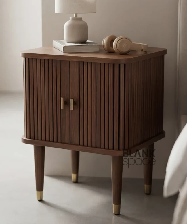 Solid wood construction Fluted wooden door design Dual-door storage cabinet Premium metal hardware accents Stable elevated legs with protective tips Modern luxury design with timeless appeal Care Instructions Wipe with…