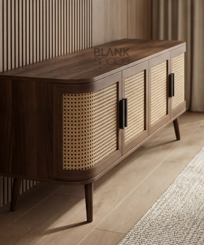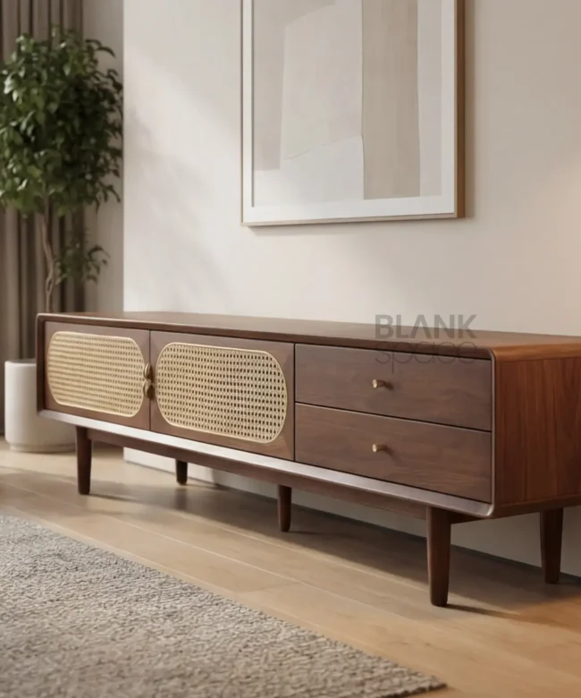 Solid wood construction for long-lasting durability Natural cane (rattan) panels for breathable storage Smooth-finish drawers with sturdy hardware Low-height design ideal for TVs and wall art Elegant, modern aesthetic with…