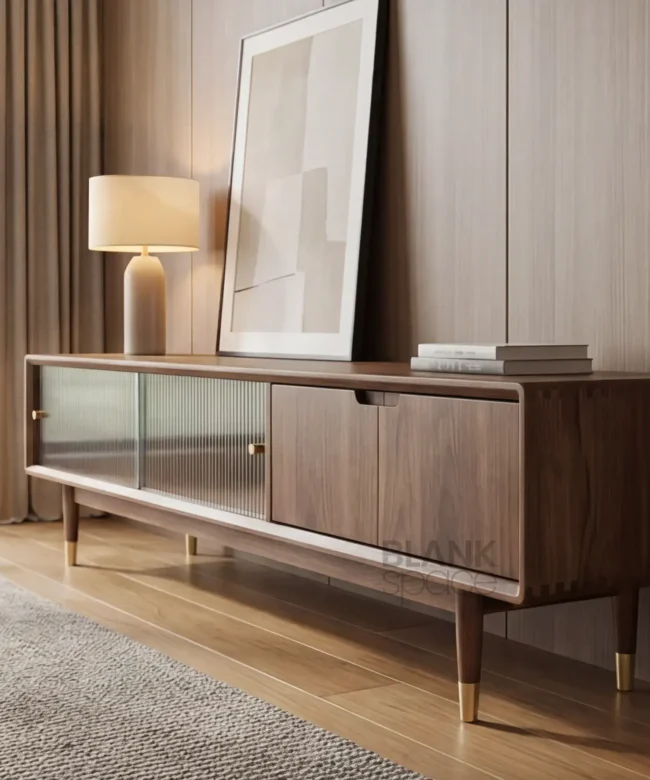 Elegant fluted glass sliding doors Premium wood construction with natural grain finish Brass-finish knobs and leg caps Stable tapered legs with floor clearance Minimalist, clutter-free design Suitable for modern, contemporary,…