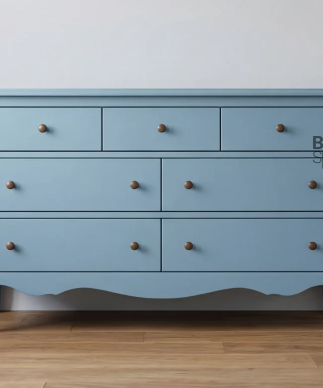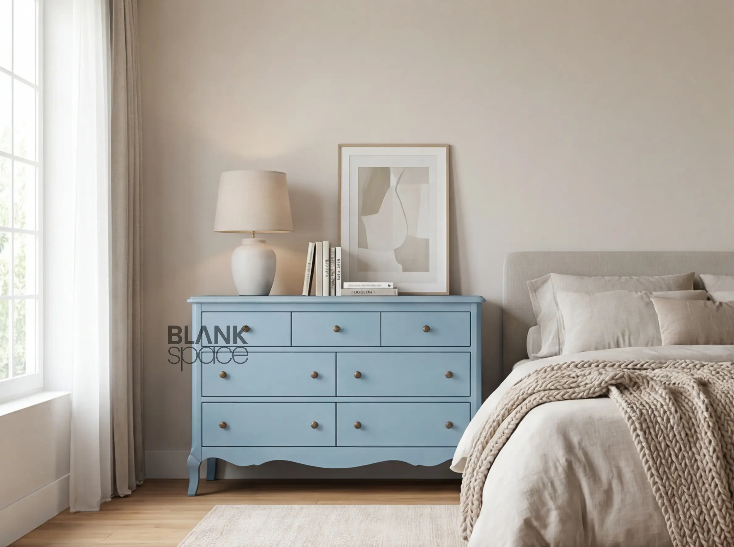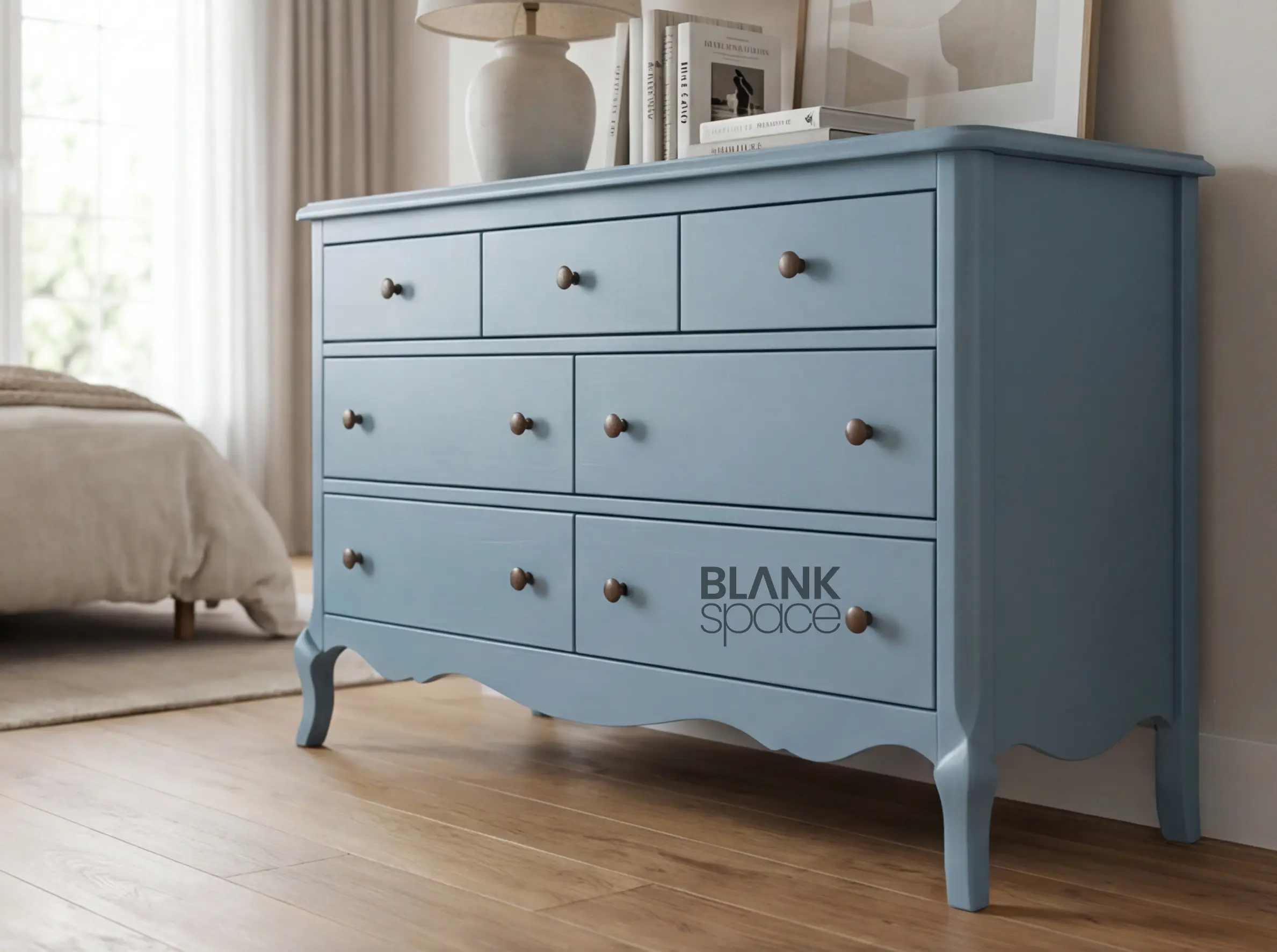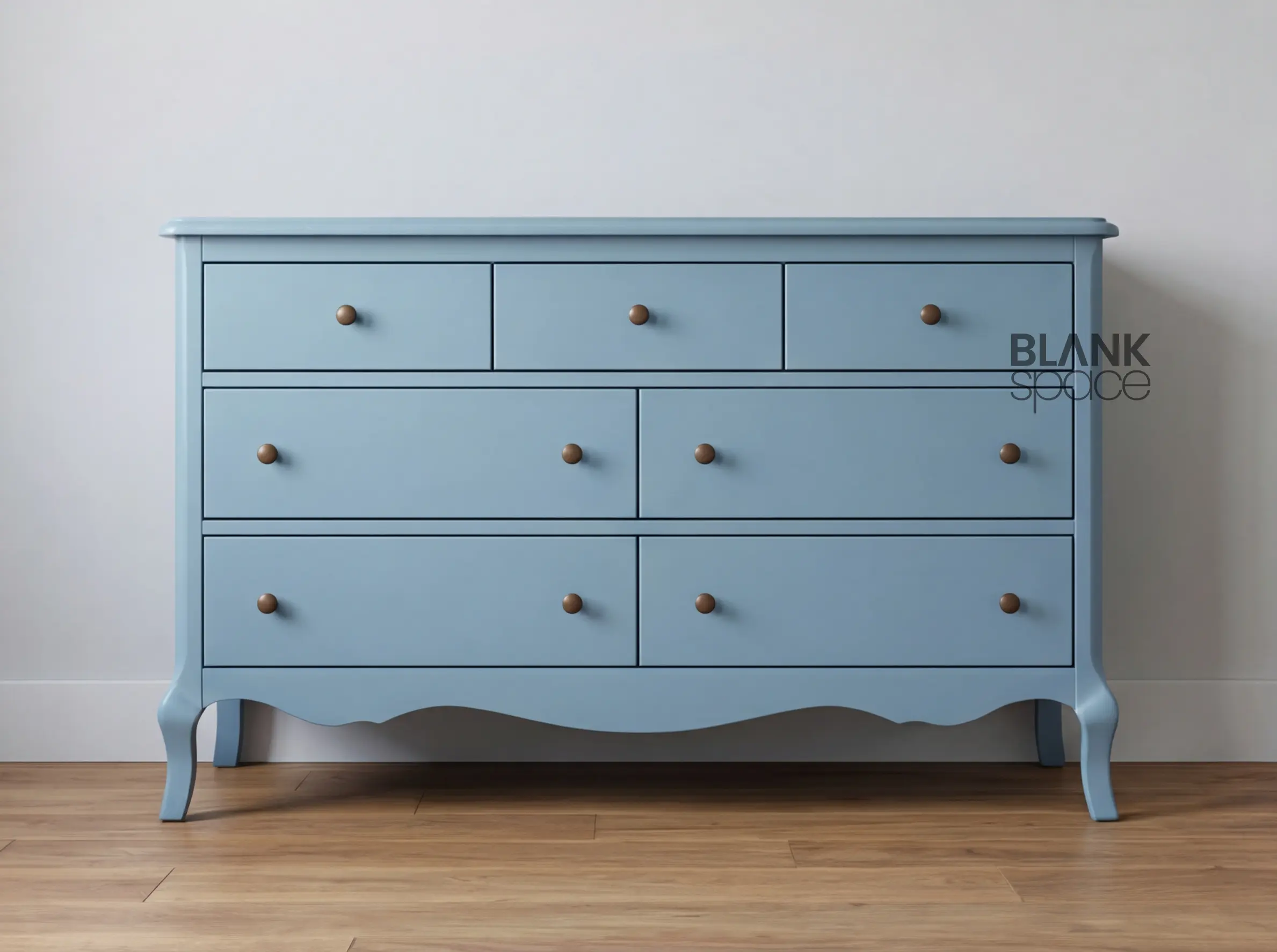 Finished in a soft muted blue, this dresser brings a serene, airy feel to your space. The gently curved base and traditional drawer layout give it a refined, heritage-inspired look, while the clean lines keep it modern and versatile.