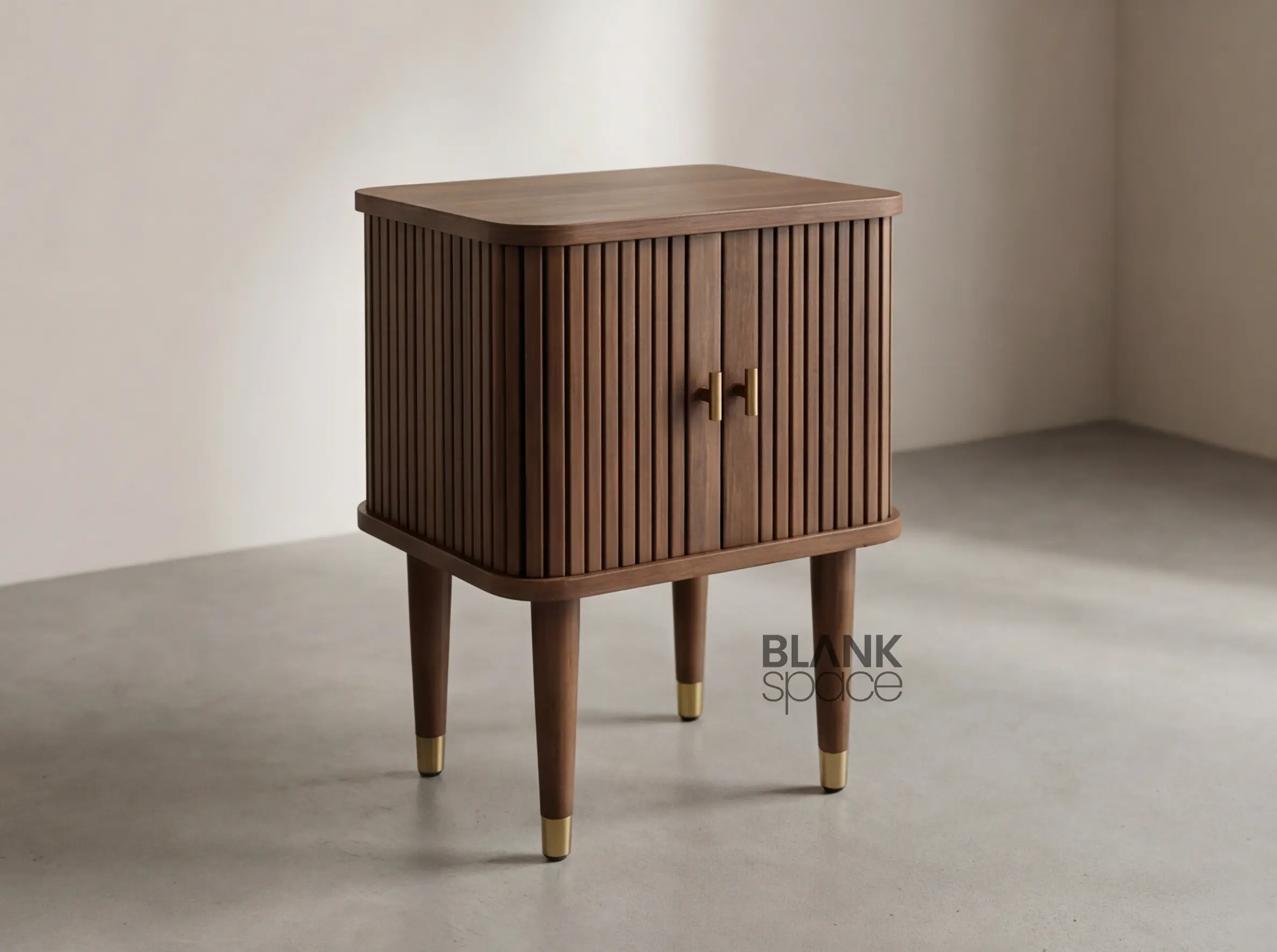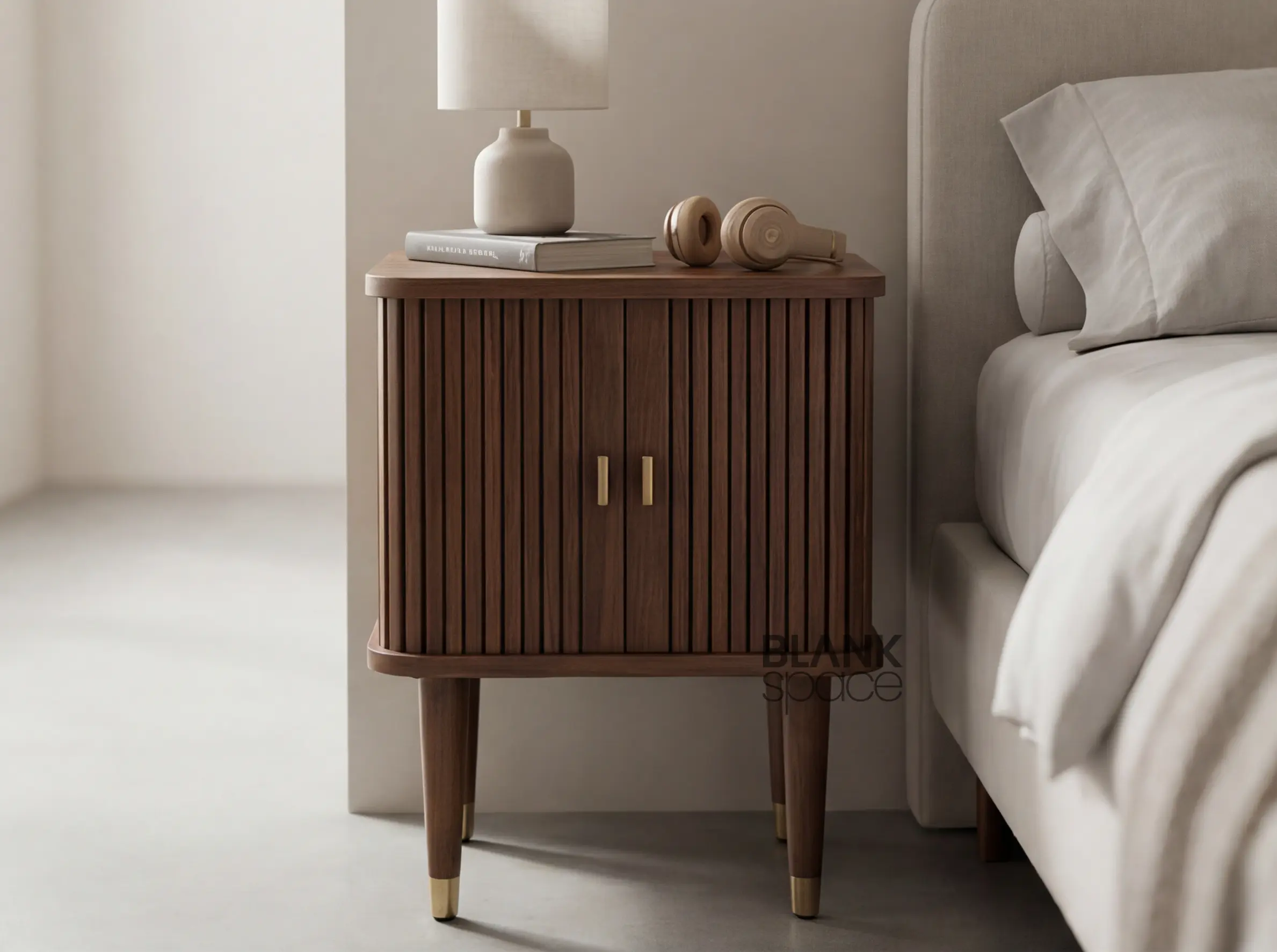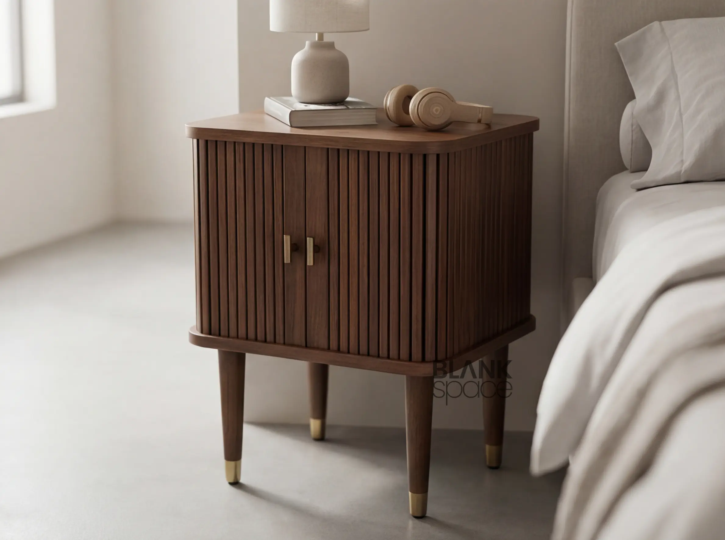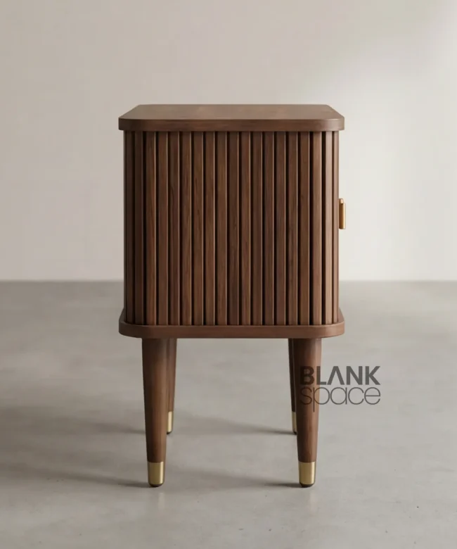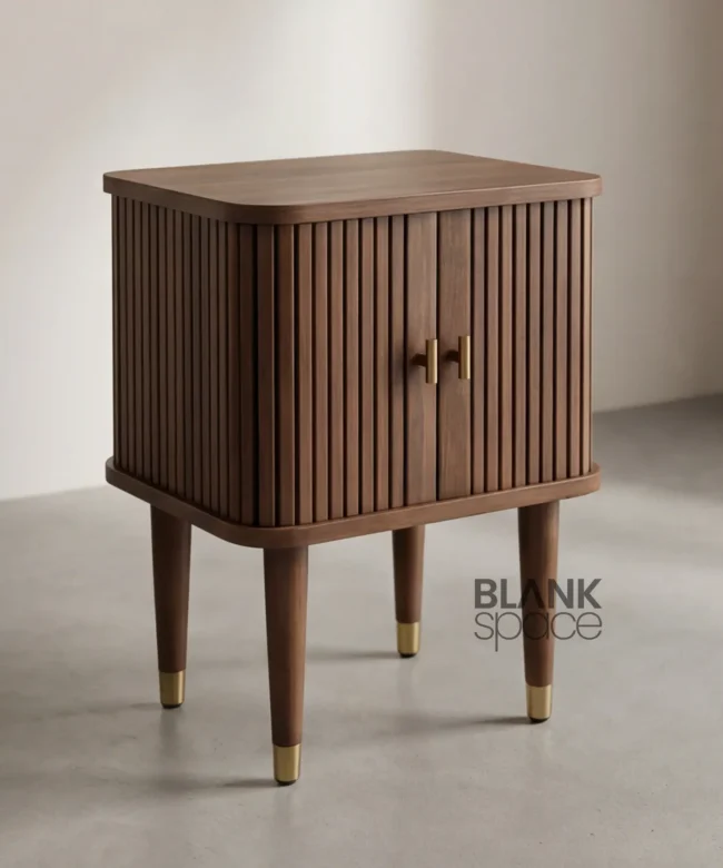 Premium Solid Wood Bedside Table with Fluted Doors