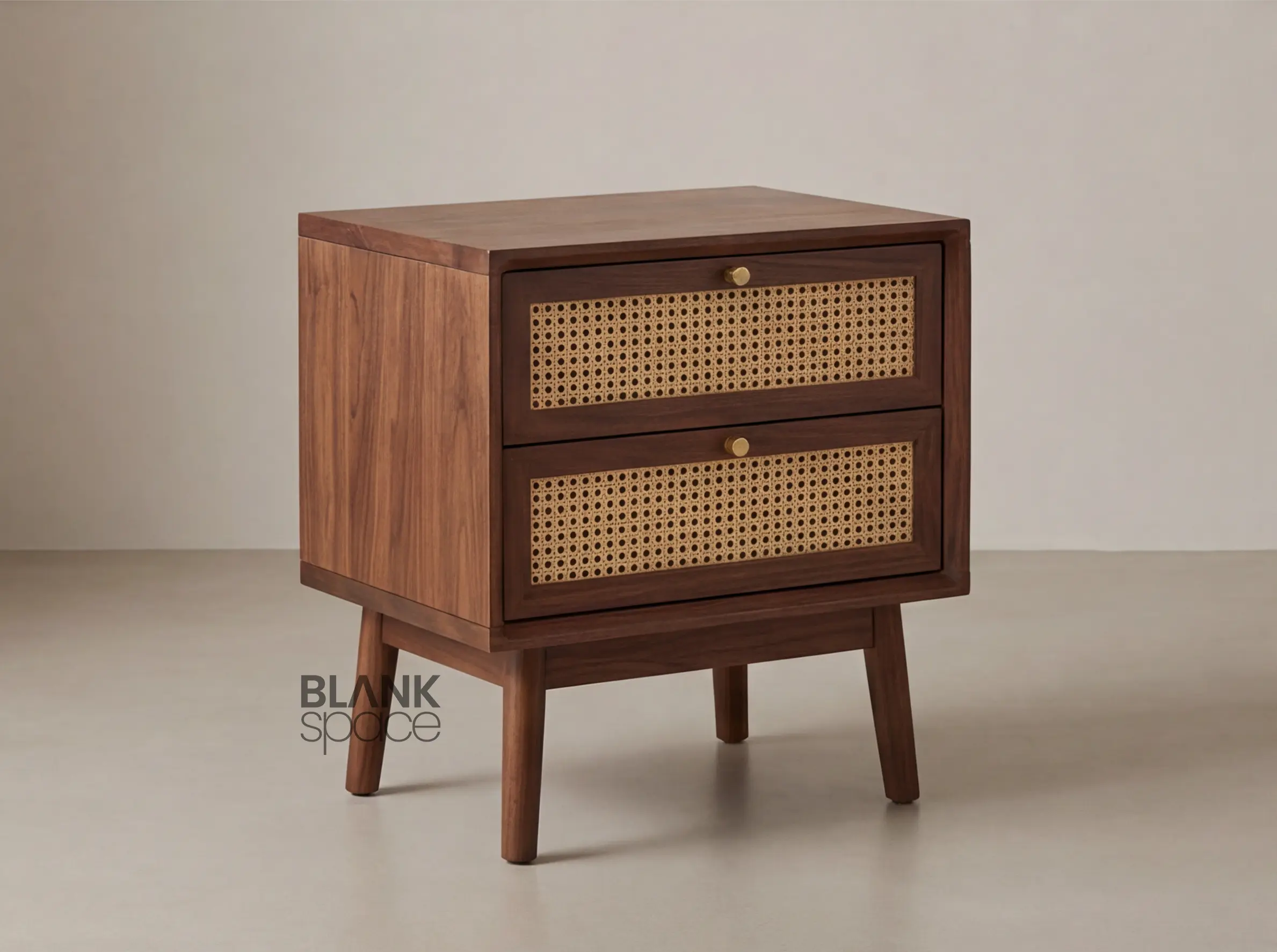 Solid Wood Bedside Table with Cane Drawer Fronts