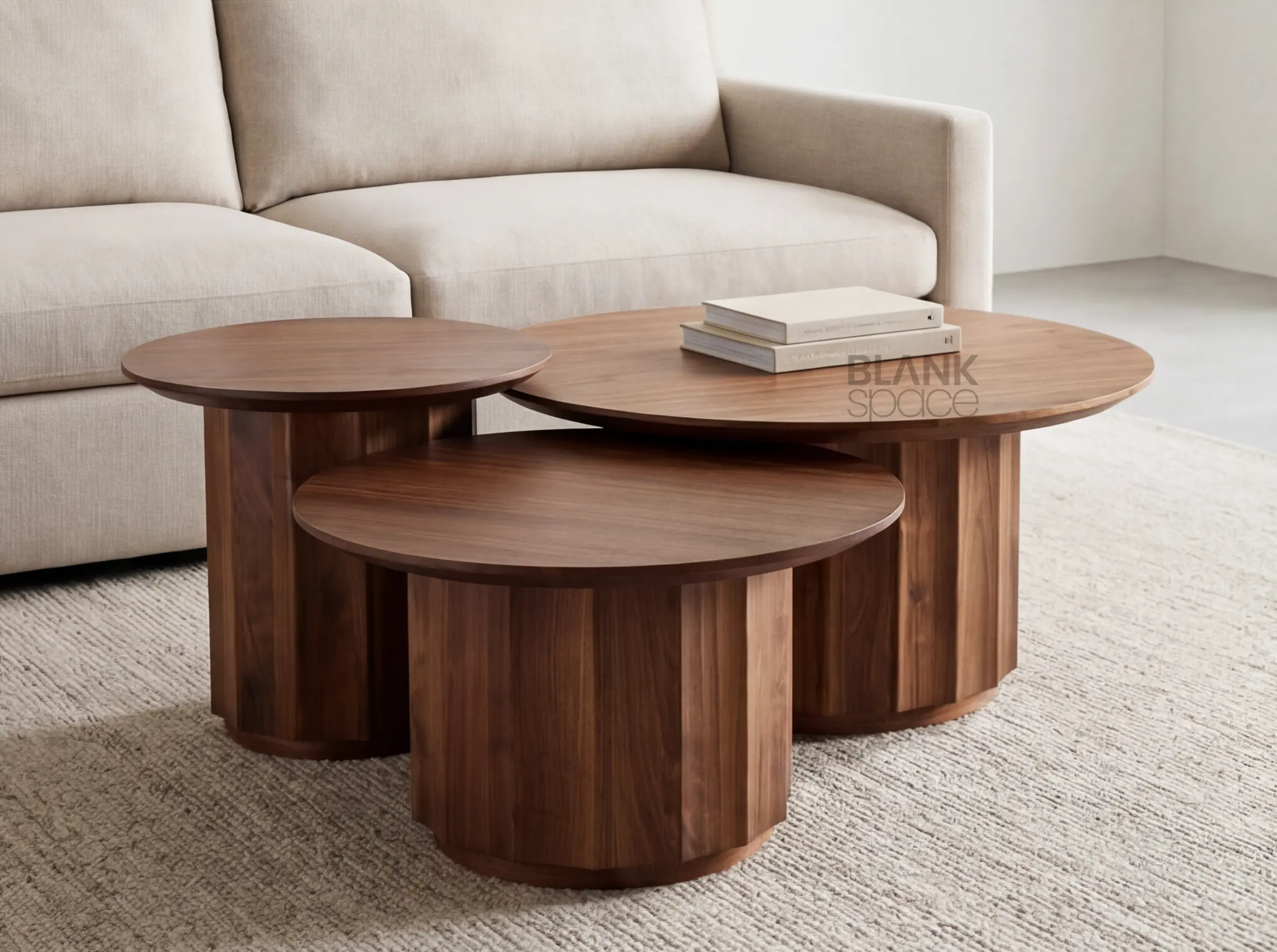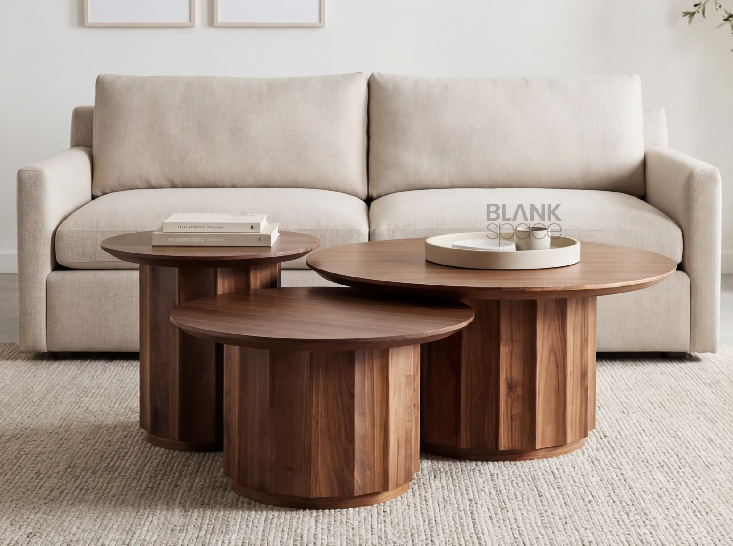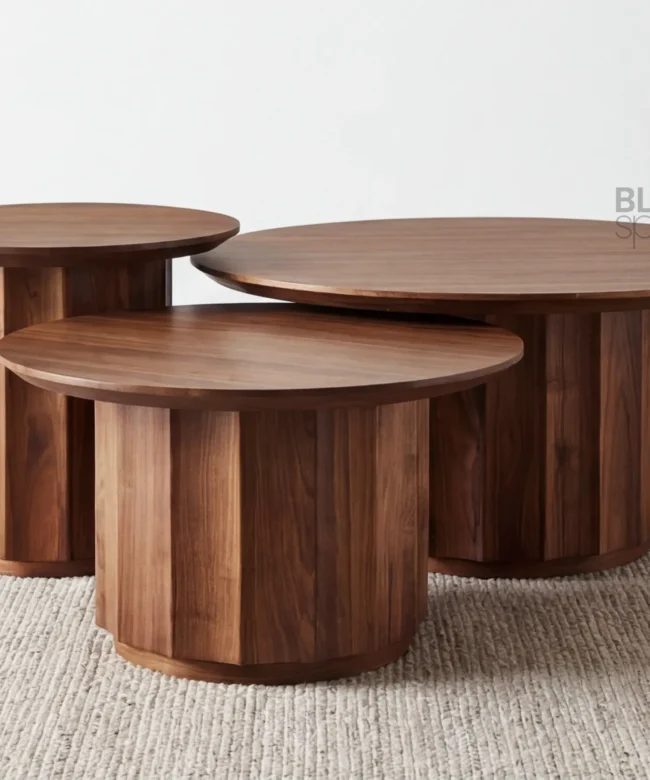 Elevate your living space with this modern solid wood nesting coffee table set, designed to balance warmth, functionality, and refined aesthetics. Featuring three circular tables in graduated sizes, this set offers flexible styling—use them together for a layered look or separately to suit your space.