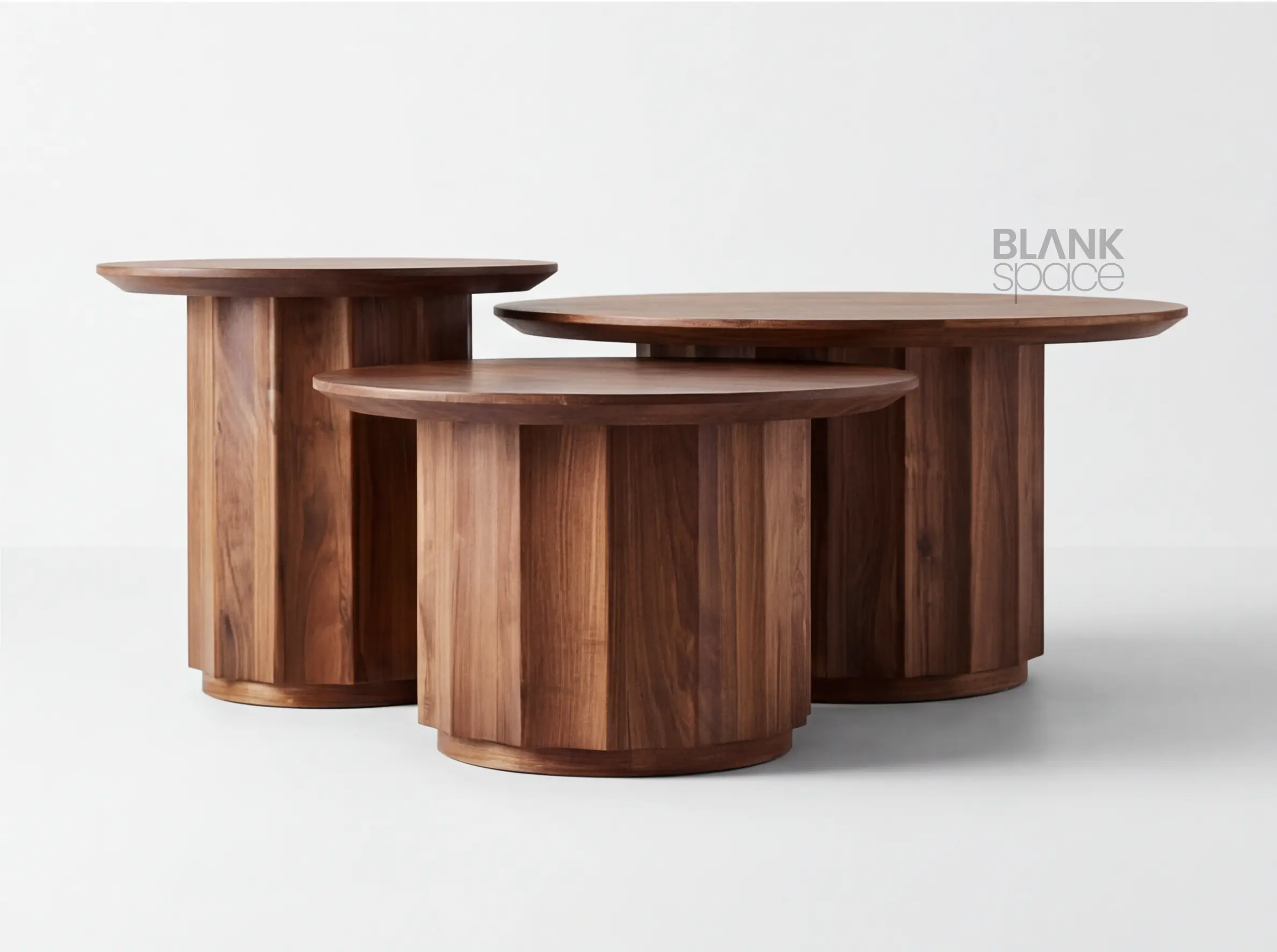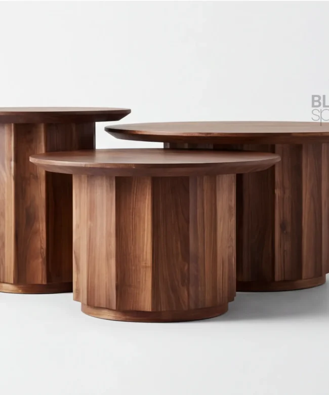 Crafted from high-quality solid wood, each table showcases rich natural grain patterns and a smooth, matte finish that highlights the material’s authenticity. The cylindrical pedestal bases provide excellent stability while adding a sculptural, contemporary character. Clean edges and precise joinery reflect superior craftsmanship.