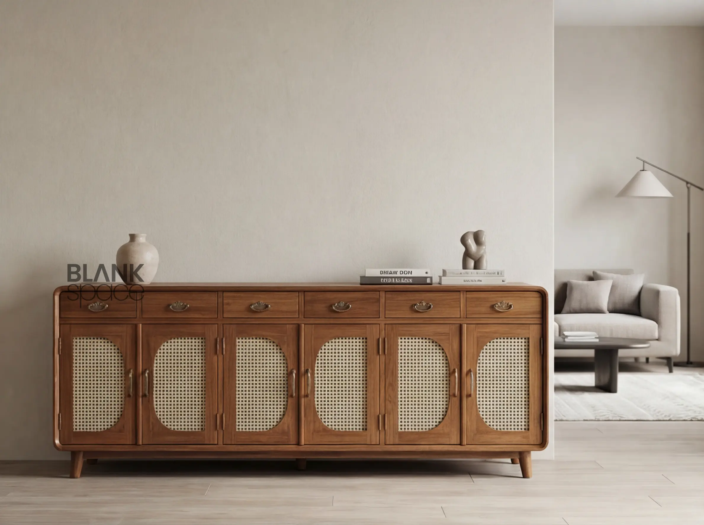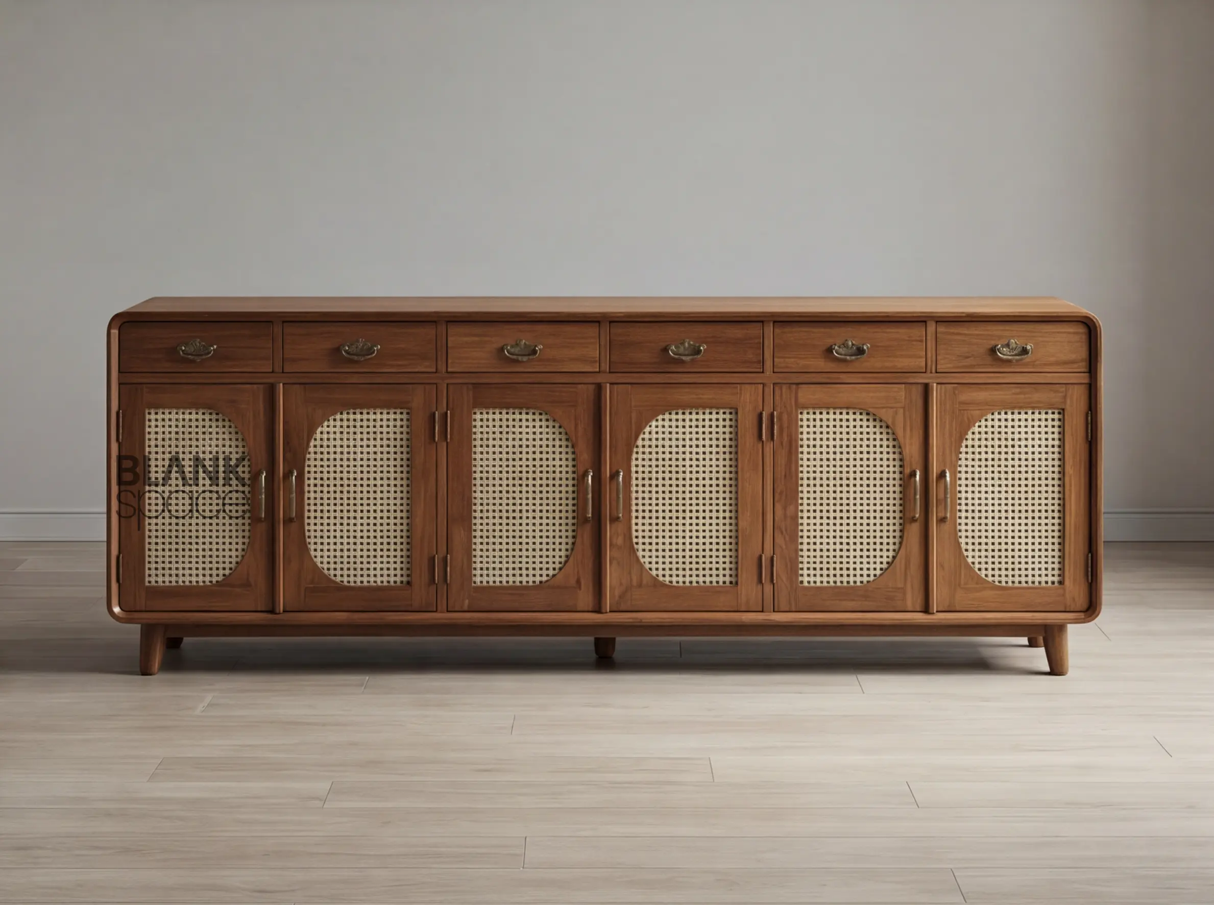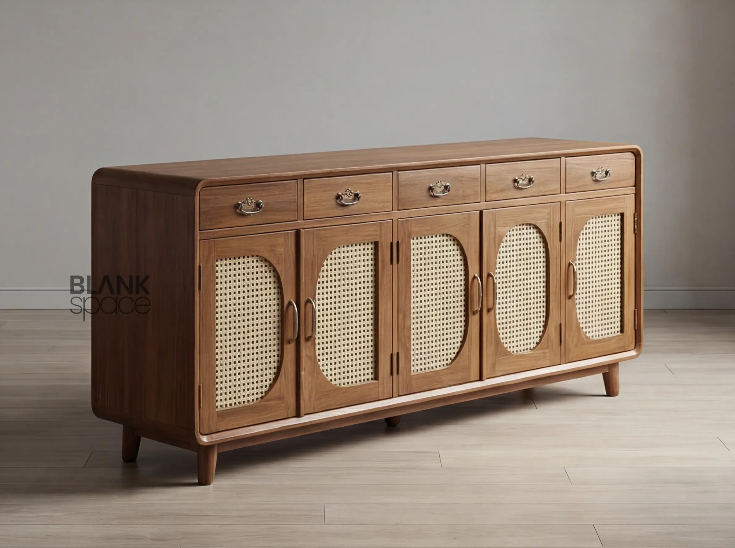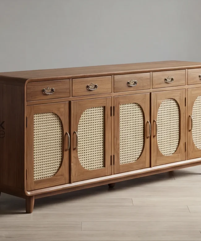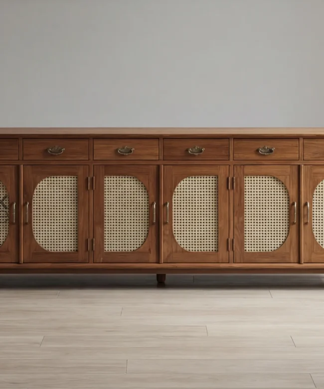 Solid Wood Sideboard Cabinet with Cane Panel Doors